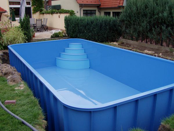 Produktionstechnologie der Becken von PP Platten ermöglicht jede Beckenform,im Gegensatz zu Pools mit Folie oder Laminat.