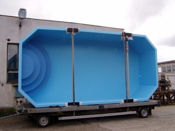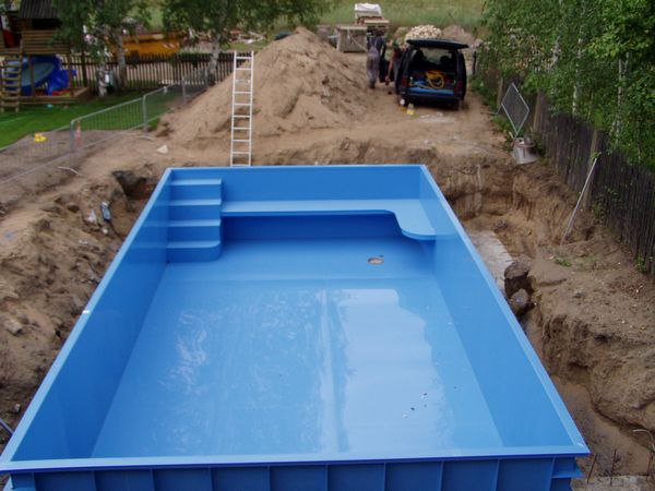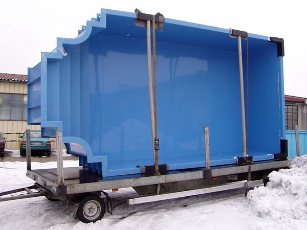 Das betrifft die Becken mit großen Außenmaßen, wo der Transport im ganzen nicht möglich ist. Oder wenn der Zutritt zum Beckenplatz mit LKW nicht möglich ist. Oder wenn es um Innenbecken geht.